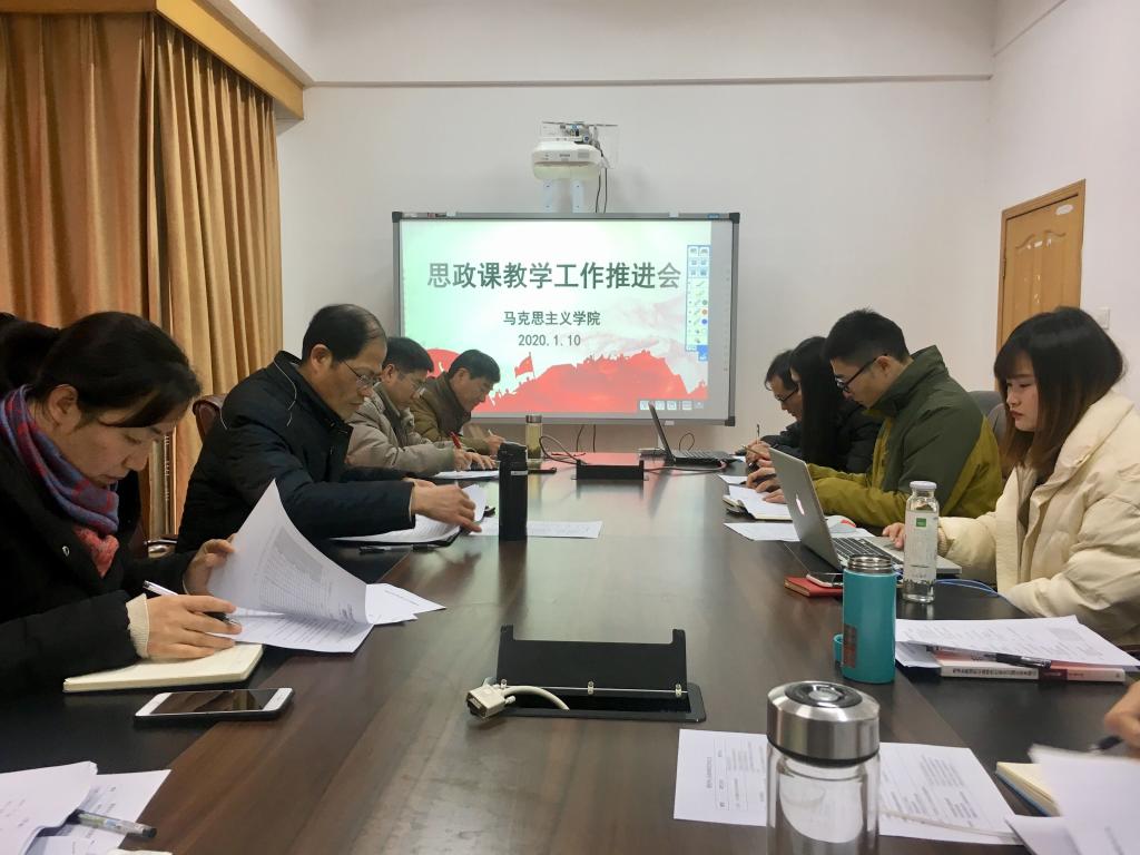 1月10日下午,马克思主义学院思政课教学工作推进会在综合楼五楼会议室召开。会议由马克思主义学院院长马万顺主持,全体思政课教师参加。
