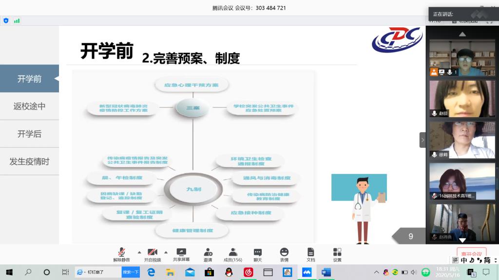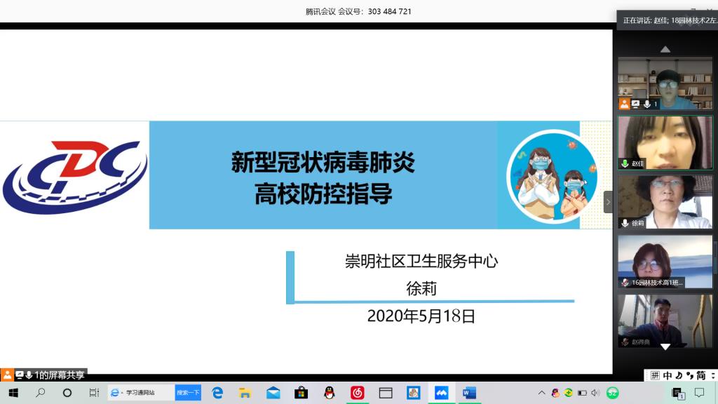 5月18日晚,风景园林学院举办了线上防疫知识讲座,特邀句容市崇明社区卫生服务中心的徐莉主任,通过线上的方式为大家带来题为“新型冠状病毒肺炎高校防控指导”专场讲座,全体学生干部通过云端在线聆听了本次讲座。