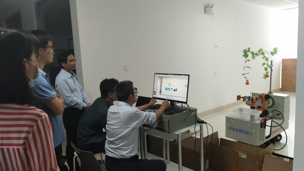 通过昆山博尔广智能科技有限公司熊联军总经理及吴汉国工程师地讲解,老师们对于农业采摘机器人的系统架构、技术路线等有了更加深入的理解;同时,借助番茄采摘场景的模拟,大家真实的感受到农业机器人的工作原理和注意事项。