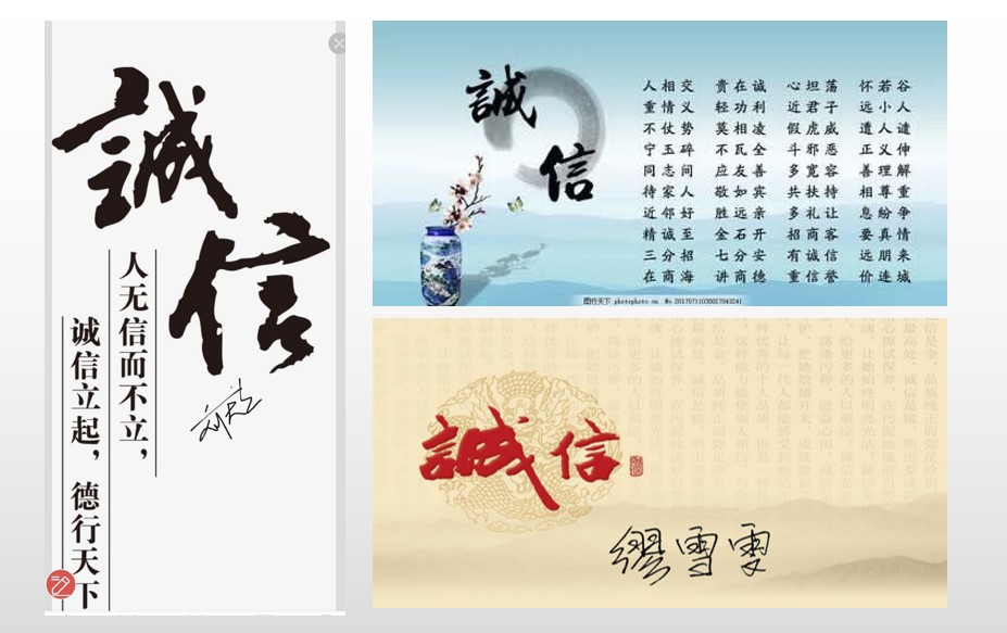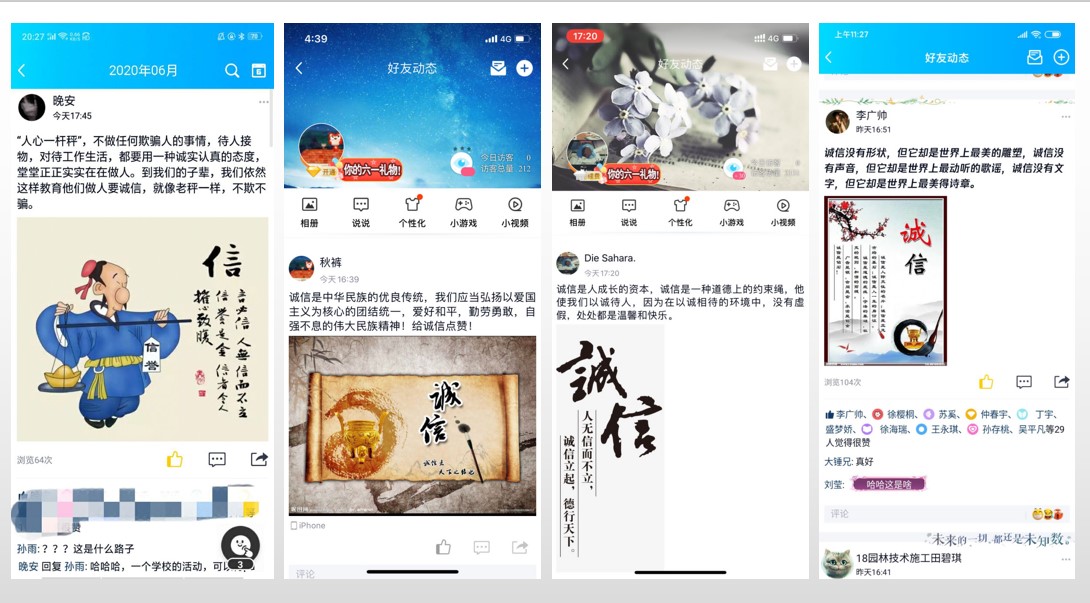 通过举办“诚信在我心中”云端主题班会、“人无信不立”线上辩论赛、“守诚信 怀感恩 ”云上生源地助学贷款诚信还款讲座、“诚信于心,书之于形”书绘作品创作、“名于诚,心也诚”线上诚信签名、“诚信宣誓,誓为我志”线上诚信宣誓、“点赞诚信,从我做起”诚信点赞等形式多样、主题鲜明、内容丰富的学生资助诚信教育主题活动,进一步提高学生诚信意识,培育诚信品质,构建诚实守信的校园文化。