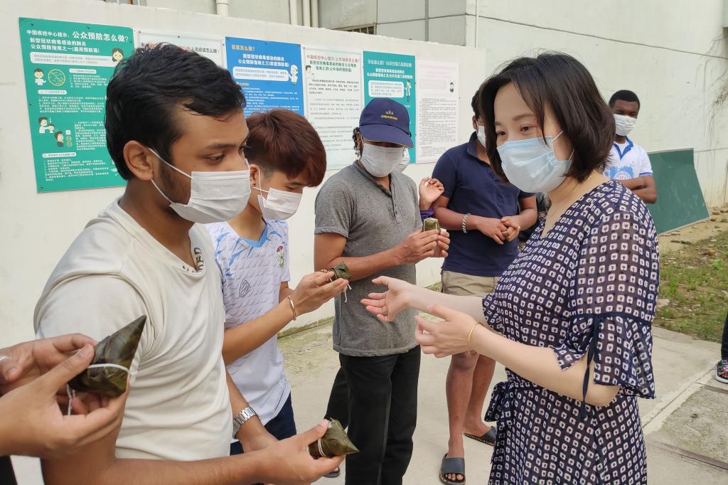 机电工程学院于6月25日在9栋宿舍开展了“诵诗品粽,情满端午”主题活动。同学们通过诵读诗词,纪念爱国主义诗人屈原;分享家乡的端午习俗,了解节日的内涵;不少同学还提笔在明信片上写下对家人的思念,盖上邮戳寄给远方牵挂的人。该院为同学们准备了新鲜的粽子,所有参与活动的同学都可以在现场品到节日美味。学院党总支副书记李杨还前往留学生宿舍,为他们送去粽子,让异国学生感受端午佳节的粽香与浓情。