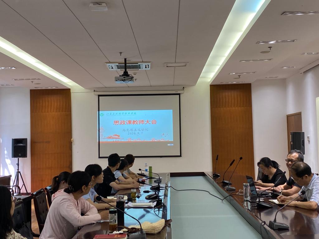 9月7日上午,马克思主义学院在图书馆中层干部会议室召开了新学期思政课教师大会,全体思政课教师参加。