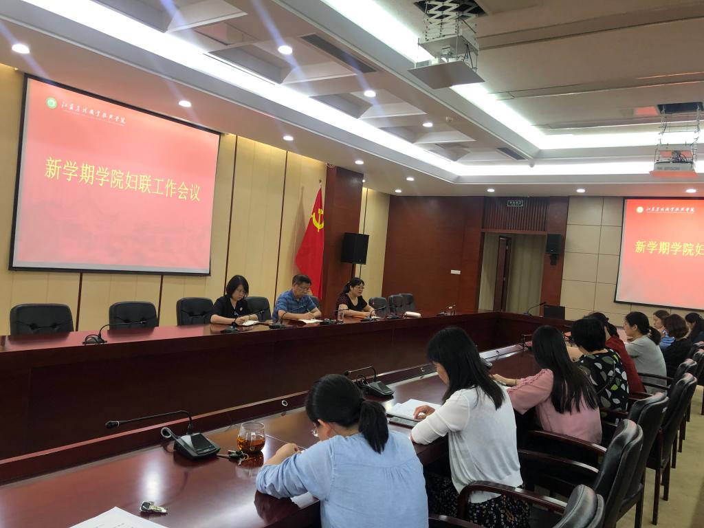 9月29日下午,学院妇联在综合楼九楼会议室召开新学期工作会议。工会主席江德明及学院妇联执委会委员参加了会议。