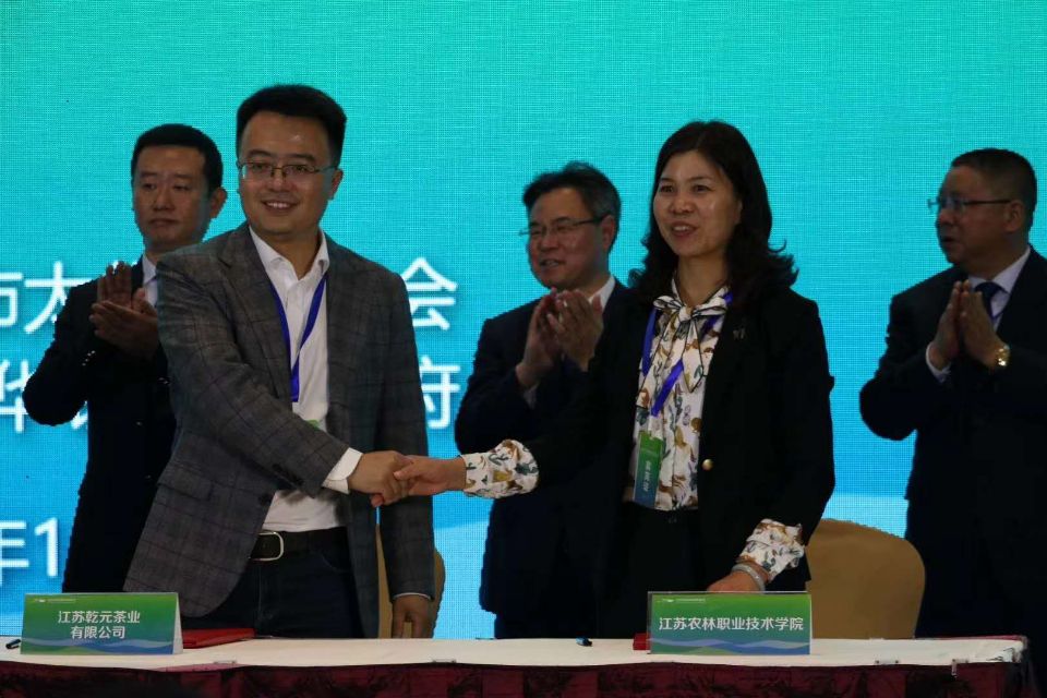 会上,谢春芹作为学院代表与江苏乾红茶业有限公司签订了校企合作协议,共建校外人才培养实训基地,推进产学研一体化。