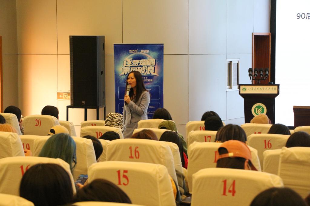 李丽女士介绍了宠物行业的发展规模、广阔的职业发展前景以及行业所面临的新挑战,着重介绍了我校优秀毕业生代表在新瑞鹏工作的成功案例,提出“学历不是最重要的,最重要的是专业技能和自己的个人能力”。讲座让同学们了解了行业前景,提高了学习兴趣。