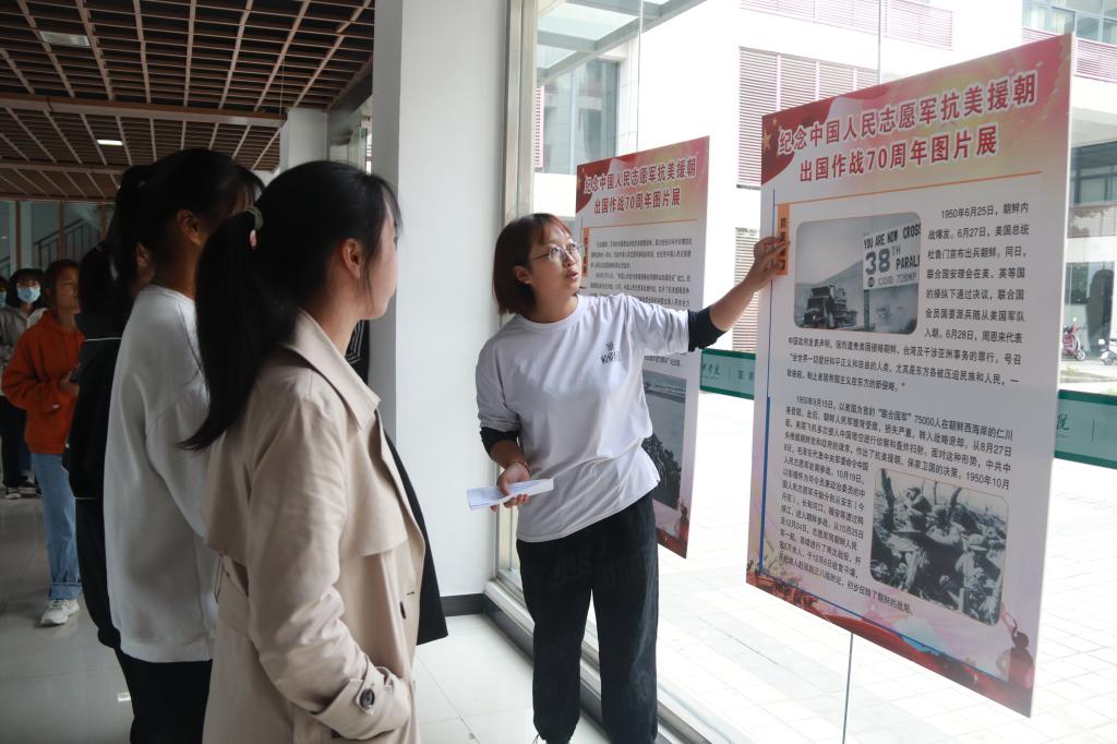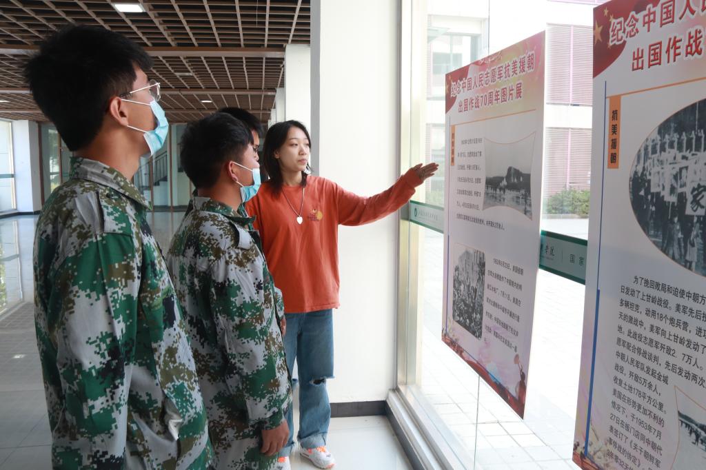 在研发楼二楼会议室,同学们观看了抗美援朝战争纪录片,纪录片回顾了抗美援朝战争历程,志愿军们坚强、无畏、勇敢与强敌进行了艰苦卓绝的浴血奋战,抵御了帝国主义侵略扩张,保卫了中国人民和平的生活,稳定了朝鲜半岛局势,维护了亚洲和世界和平。在研发楼一楼走廊上,同学们参观了纪念中国人民志愿军抗美援朝出国作战70周年图片展,图片展全面回顾了中国共产党领导抗美援朝战争的光辉历程和宝贵经验,宣传了中国人民志愿军的英雄事迹、彰显了革命精神。
