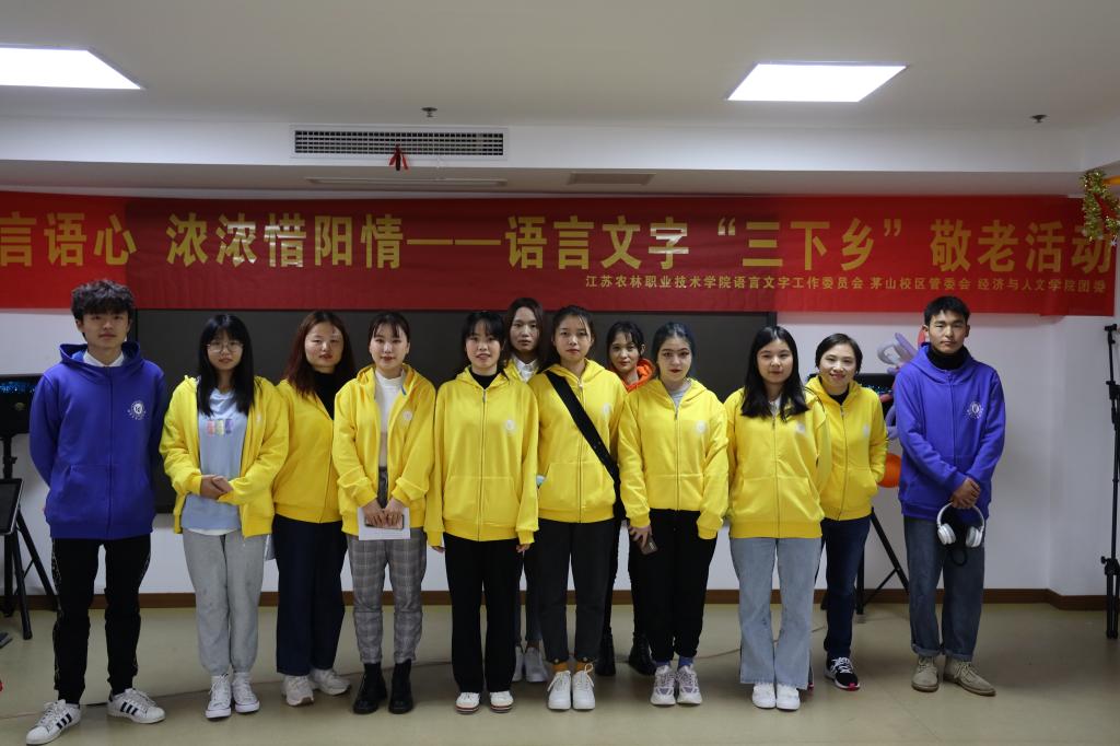 11月21日下午,永利官网约20余名师生赴句容市逸仙颐养院开展以“悠悠言语心,浓浓‘惜阳’情”为主题的“三下乡”走进敬老院活动。此次活动由学院语言文字工作委员会主办,茅山校区管委会、经济与人文学院团委和“文之源”社团共同承办。