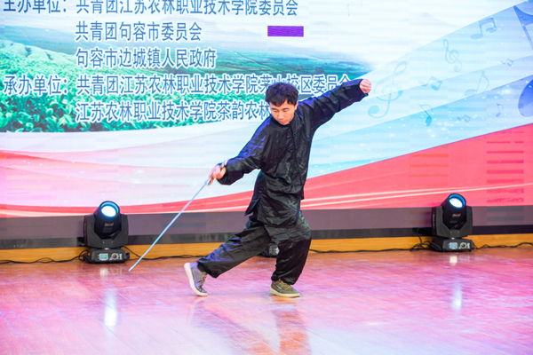 文艺演出以欢快的开场舞《采茶舞》拉开序幕,采茶舞表现了采茶时的欢快情绪,再现了采茶姑娘青春焕发的风貌。演出形式丰富、节目内容新颖,有藏族同学带来的舞蹈《雄鹰展翅》、茶诗朗诵《给语爱茶人》,还有中国传统文化武术、茶艺等表演。期间,周杨维子带来的《我和我的祖国》唱出了青年学子对祖国的深情告白,钱志洋等10名退役军人带来的舞台剧《强军战歌》,他们穿着军装,以英姿飒爽的身影展现了军人的风采,向全场观众展现了新时代农林青年学子的远大抱负。