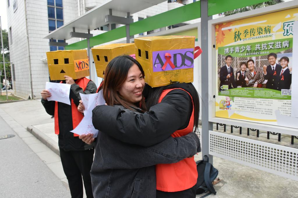活动现场分咨询、检测、互动等区域。现场志愿者通过宣传展板、宣传资料、防艾物品、为过往师生佩戴“红丝带”等,普及宣传艾滋病防治知识;志愿者们还通过“艾”的拥抱、防“艾”答题等现场互动,让学生对艾滋病的传播途径、防治知识及国家对艾滋病感染者的关怀救治政策有一个全面的了解。此外,活动现场还为学生提供 HIV抗体检测试剂包使用指导服务。
