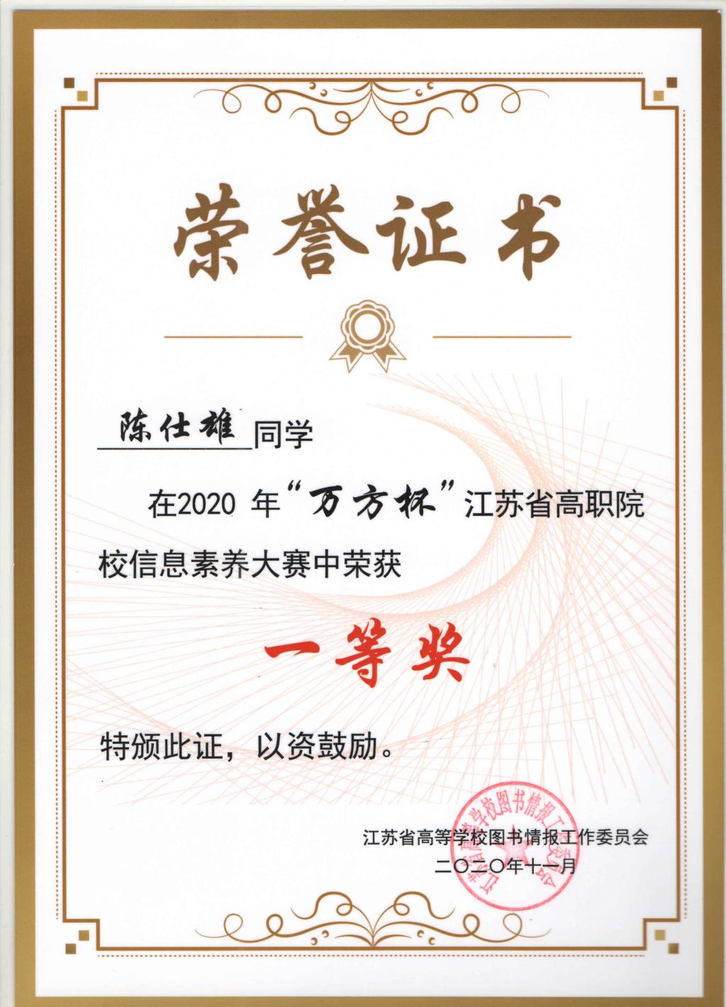 近日,在2020年全省高职院校信息素养大赛(学生个人赛)中,永利官网学子谭舜尧、陈仕雄两位同学荣获一等奖,杨春环同学获二等奖,马向荣同学获三等奖。张田林、李伟和鲁志军三位老师荣获“优秀指导老师奖”,学院荣获“最佳组织奖”。