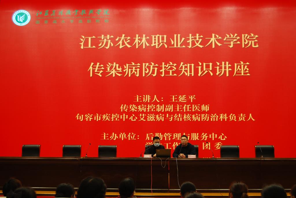 12月24日下午,后勤管理与服务中心联合学生处、团委共同举办了传染病防控知识讲座。邀请句容市疾控中心艾滋病与结核病防治负责人、传染病控制副主任医师王延平主讲,相关工作人员及二级学院师生代表参加了活动。