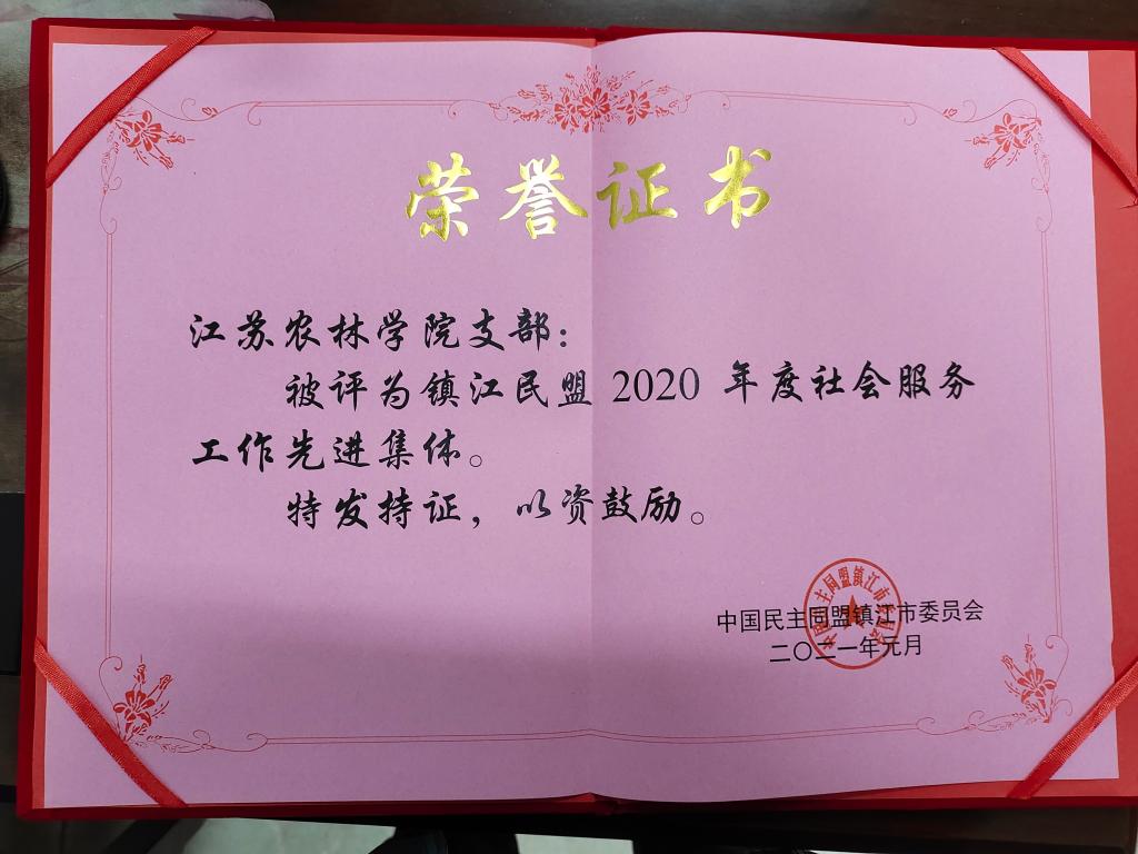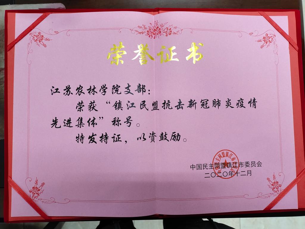 1月8日下午, 民盟镇江市委会十三届七次全委会上表彰了2020年度先进集体和先进个人,永利官网民盟支部获盟市委多项集体和个人奖励。支部获2020年度“抗击新冠肺炎疫情先进集体”“社会服务工作先进集体”和“特色基层组织”3项奖励;贾君主委获“抗击新冠肺炎疫情”先进个人,童斌副主委获“社会服务工作”先进个人,孙苹丽、樊开青2名盟员获“优秀盟员”称号。