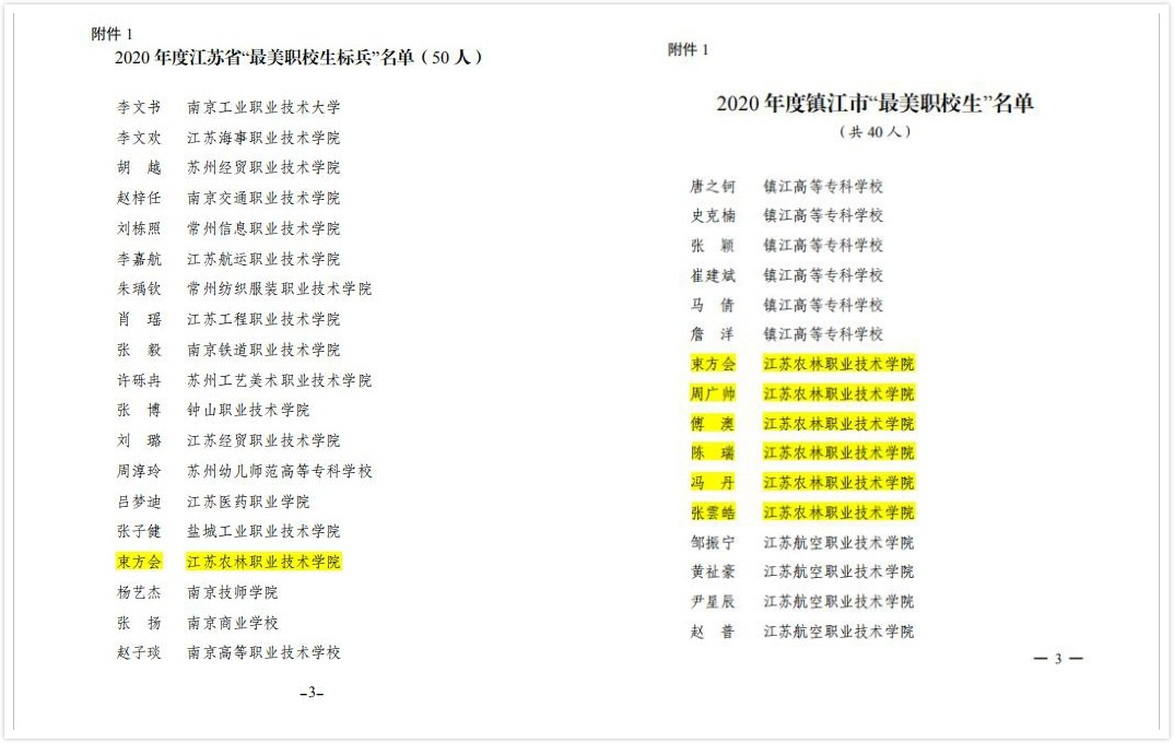 日前,由共青团江苏省委、江苏省教育厅主办的2020年度江苏省“最美职校生”寻访活动结果公布,由学院团委推荐的农学园艺学院18休闲农业班束方会同学,荣获2020年度江苏省“最美职校生标兵”称号。同时,由共青团镇江市委、镇江市教育局主办的2020年度镇江市“最美职校生”评选中,永利官网束方会、周广帅、傅澳、陈瑞、冯丹、张雲皓等6位同学荣获镇江市“最美职校生”称号。