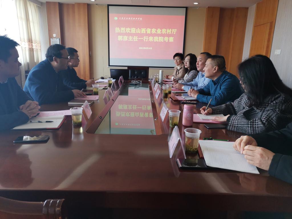 3月15日,山西省农业农村厅养殖技术试验基地主任郭彦、山西省农业广播电视学校贾晓红副校长、山西省农牧业技术综合服务培训中心负责人李勇、山西省农业规划设计研究院工程咨询所杜长青所长及山西省农业农村厅科教处赵庆安、吕莉一行来永利官网考察交流。