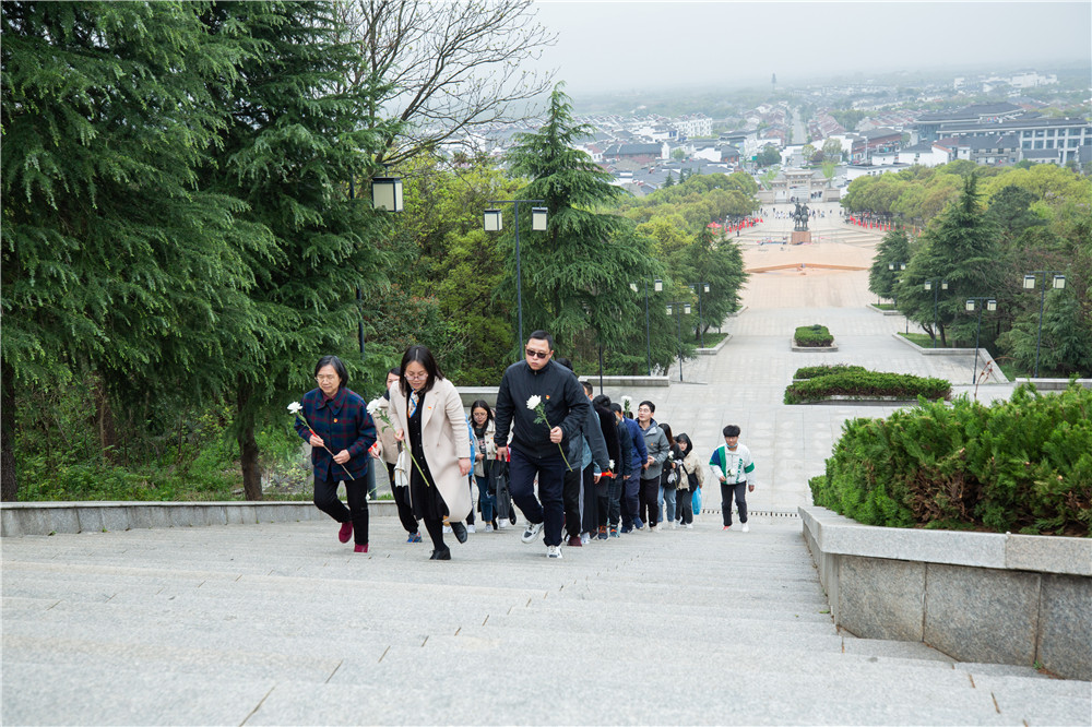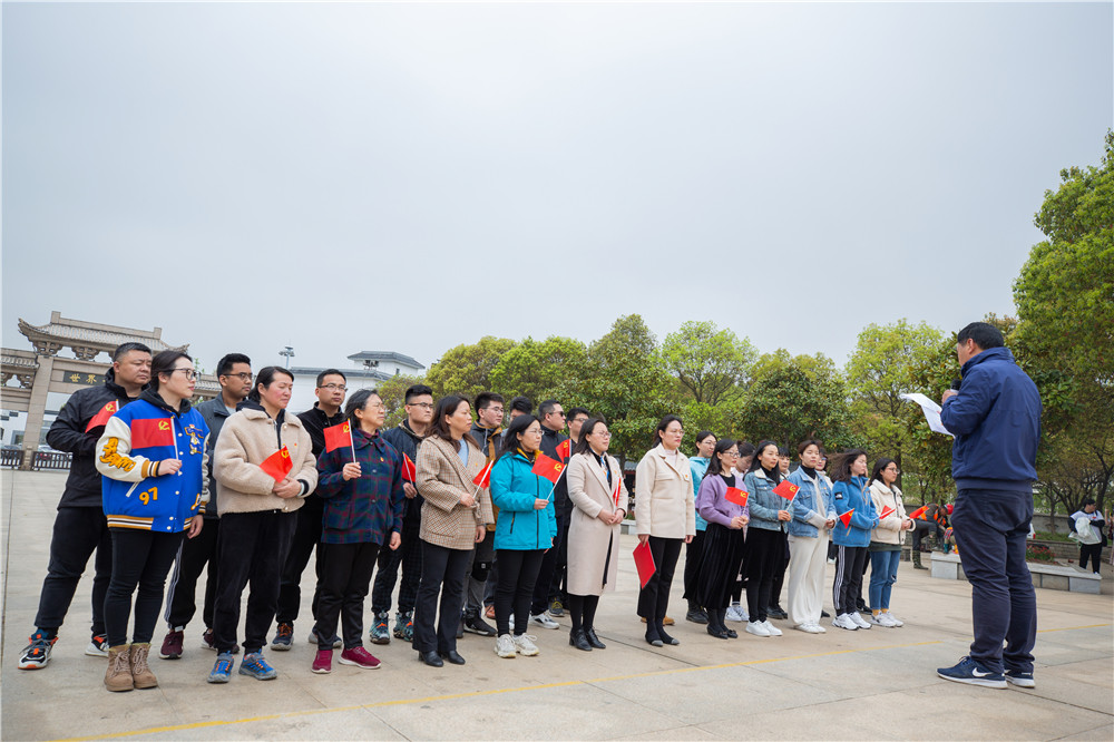 时近清明,大家缓缓走向纪念碑,在庄严的革命烈士纪念碑前,党员们整齐列队,神情肃穆,向革命先烈敬献白花,肃立默哀,深切缅怀烈士的光辉业绩,追思他们英勇顽强、不怕牺牲、无私奉献、忠诚为民的崇高革命精神。在参观新四军纪念馆后,党员们面对鲜红的党旗,举起右手庄严宣誓,重温入党誓词。在铿锵有力的誓词中,追思为民族解放事业英勇牺牲的革命先烈,立下为共产主义事业奋斗终身的誓言。
