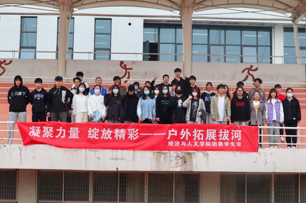 4月14日下午,经济与人文学院团委、学生会组织举办了“凝聚力量,绽放精彩”户外拓展拔河比赛。
