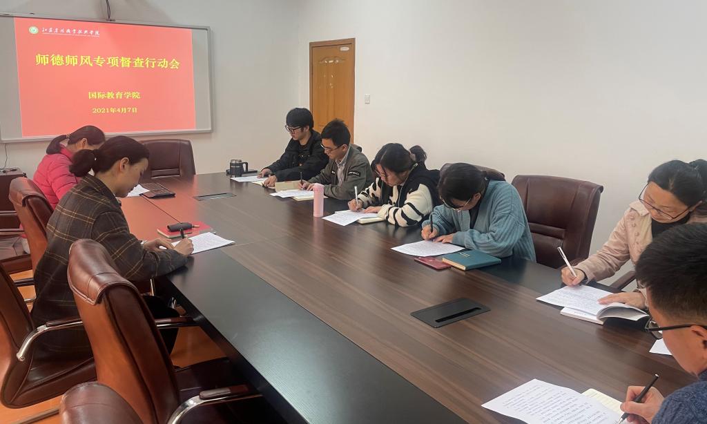 学院党委在本学期开展主题为“立德树人铸师魂 不忘初心正师风”的师德师风专项督查行动,旨在扎实推进《新时代高校教师职业行为十项准则》的落实,弘扬高尚的师德师风,严惩师德失范行为,逐步修订完善师德教育、宣传、考核、督导、激励、惩处等相关制度文件,不断完善师德师风建设长效管理机制,实现师德师风建设工作常态化、制度化。