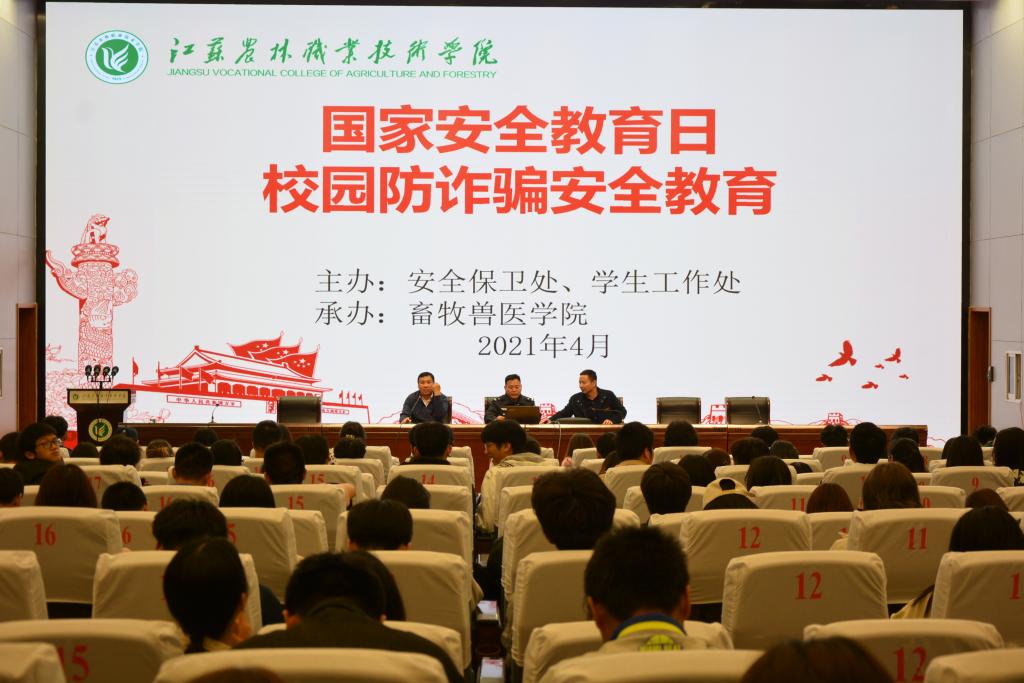 2021年4月15日,第六个国家安全教育日,由学院安全保卫处、学生工作处主办,畜牧兽医学院承办的 “谨防网络诈骗,共建平安校园”校园防诈骗教育宣传主题活动在图书馆报告厅举行,安全保卫处、畜牧兽医学院相关负责人以及300余名学生参加了此次活动。