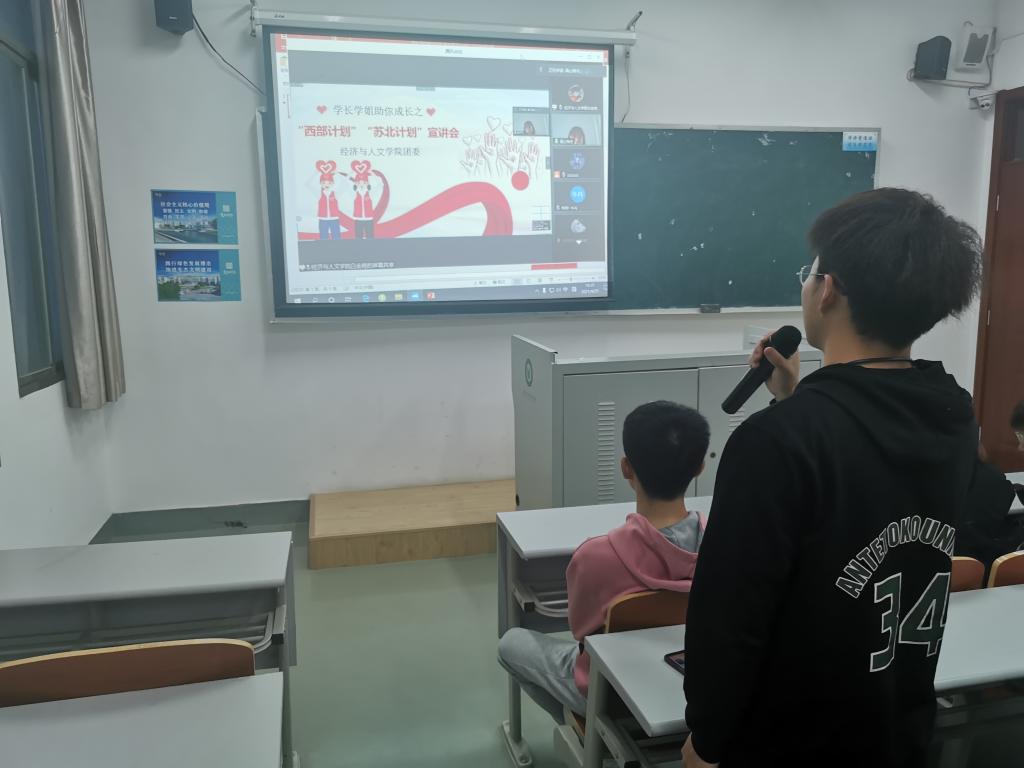 为宣传西部计划、苏北计划,引导毕业生积极投身志愿服务、助力乡村振兴,4月25日晚,经济与人文学院团委举办了2021年西部计划、苏北计划宣讲会,共200多人参会。