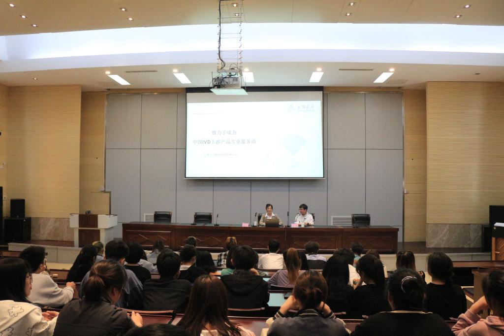 朱培结合所在企业的业务介绍了IVD(体外诊断)行业的发展现状、未来发展前景以及相关机构的人才需求情况;从学生就业和职业发展的角度,向在场同学介绍了医疗行业重点就业方向、职业发展前景等内容。