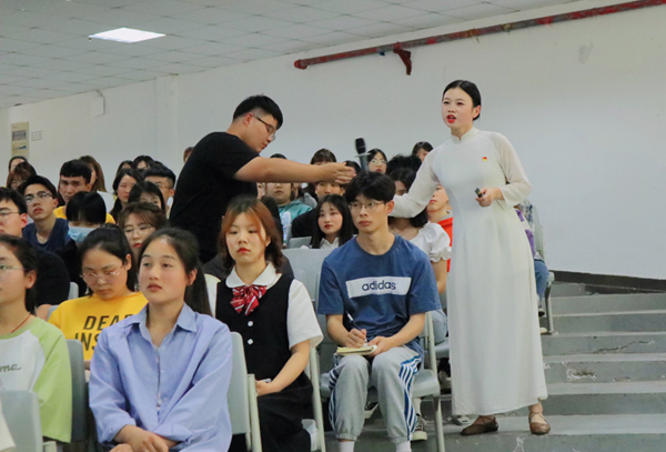 豆文静从“我的茶人筑梦之旅”案例出发,讲起了她的在校学习和就业历程。2018年,她曾在“武进人才杯”江苏省第十三届大学生职业生涯规划大赛中荣获专科组特等奖,当时她给自己的职业目标是创立一家茶文化传播公司,“如今,我已创业成立了草木茶艺培训中心,我正在努力向我的职业目标慢慢奋进”。她还详细阐述了生涯目标的体认、自我评估、职业探索内容、环境评估、职业决策、职业生涯发展规划、制定行动计划并执行、评估与反馈七大步骤。现场还与同学们互动的方式解答了同学们对如何做好未来职业规划的疑惑。