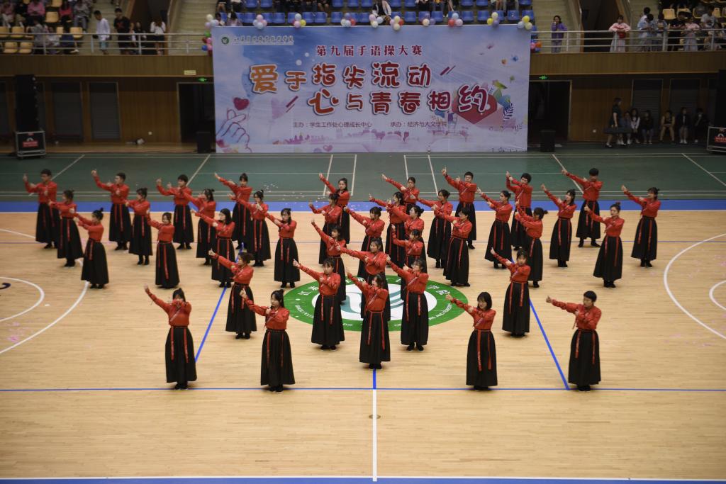 5月12日下午,第九届“爱于指尖流动 心与青春相约”手语操大赛在体育馆成功举办。比赛由学工处心理成长中心主办、经济与人文学院承办。