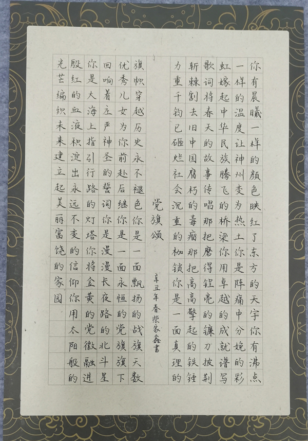 近日,由学院语言文字工作委员会、茅山校区联合主办的“笔墨中国”汉字书写大赛成功举办。此次活动主题为“翰墨言百年党史,挥毫抒爱国情怀”,由翰墨农林书画社承办,130余名同学参加。