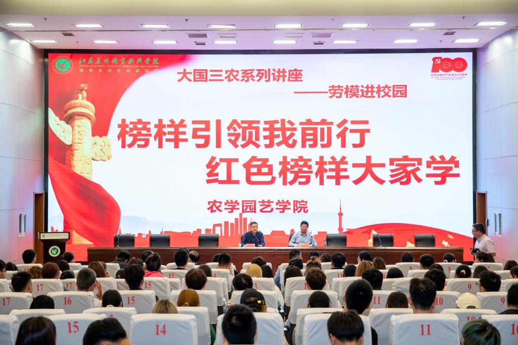为大力弘扬劳模精神和劳动精神,进一步发挥劳模的示范引领作用,激发师生党员学习榜样、服务农业的情怀,5月19日下午,“榜样引领我前行”红色榜样大家学之“大国三农-劳模进校园”活动在图书馆报告厅举行。学院党委委员、纪委书记周国义主持会议,并与农学园艺学院师生代表共同听取了全国劳动模范、淮安市刘老庄村党总支书记朱林的专题报告。