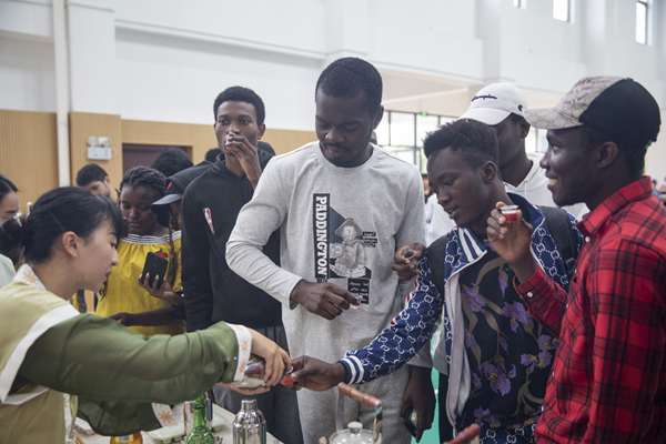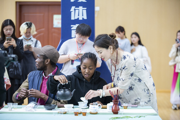523日,茅山校区联合国际教育学院开展主题“茶香中国 共享美好”茶文化交流活动。活动由江苏省茶叶学会主办、茶韵农林服务团协办。来自7个国家的30名留学生走进了活动现场,茶韵农林服务社团的师生带领留学生一起了解中国茶叶历史与茶文化,感受中华传统文化的博大精深。