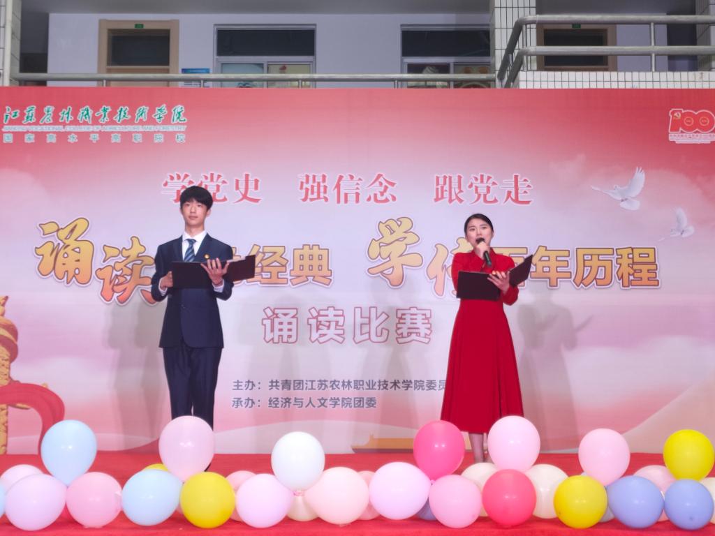 为庆祝中国共产党成立100周年,深入学习党史,教育引导广大团员青年深入了解党的百年奋斗史,坚定理想信念、厚植爱国情怀、发奋成长成才,5月19日,永利官网在新禾创客空间大厅举行了“学党史、强信念、跟党走”之“诵读红色经典 学传百年历程”诵读比赛。本次比赛由学院团委主办,经济与人文学院团委承办。