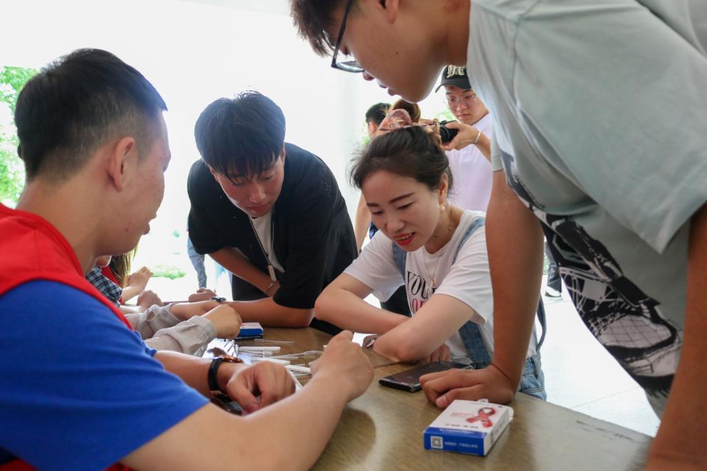 活动现场,志愿者们积极师生宣传预防艾滋病相关知识,为现场的同学讲解并发放预防艾滋病相关宣传资料、HIV抗体检测试剂盒。同时,为师生们讲解了HIV抗体检测试剂盒使用方法,例如怎样采血、检测、显示判断等内容。