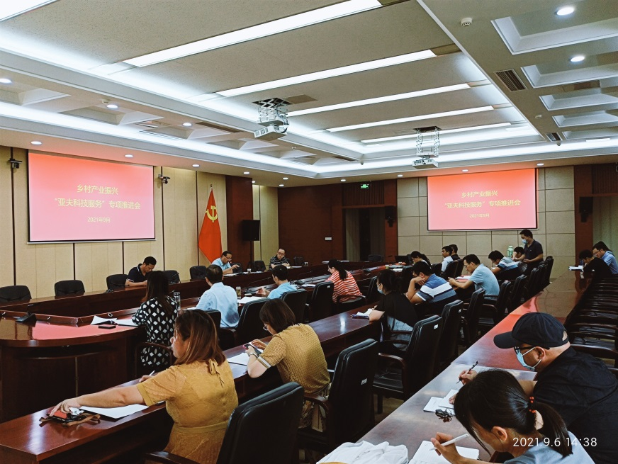 9月6日,学院召开乡村产业振兴“亚夫科技服务”专项推进会,科技开发处、继续教育学院和计划财务处部门负责人、13个专项负责人及亚夫科技服务团队专家参加会议。