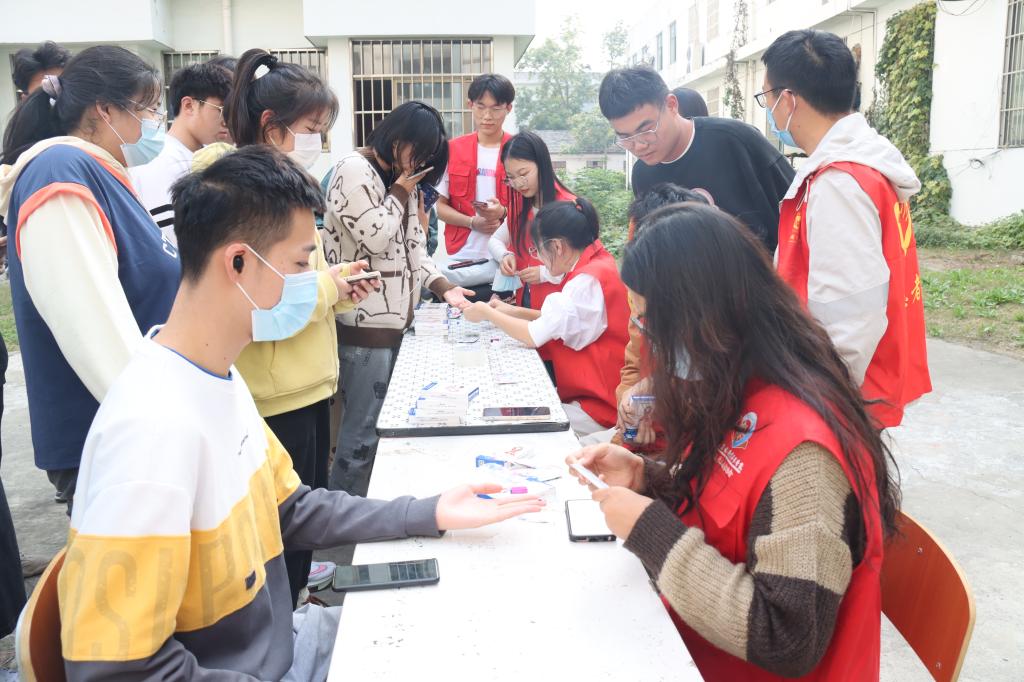 活动共分为扫码领取HIV抗体试剂盒、检测指导两个部分。现场的同学们井然有序地排队领取试剂盒,选择现场测试或者自行测试。活动中,同学们积极参与,对于关于艾滋病的困惑,志愿者一一解答,并在现场指导同学们试剂盒使用方法。活动提高了同学们对艾滋病防治检测重要性的认识,使得更多的同学参加投入到“防艾”队伍中。