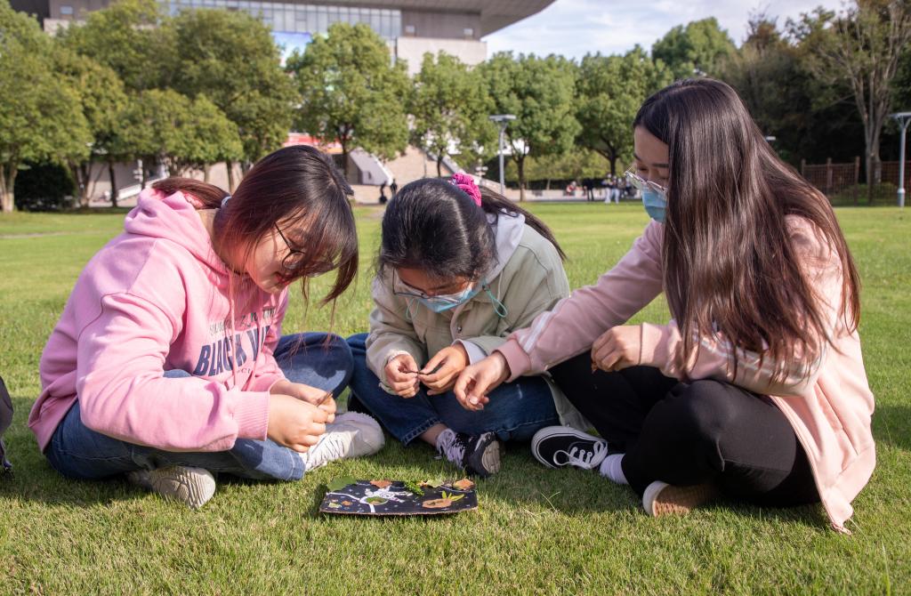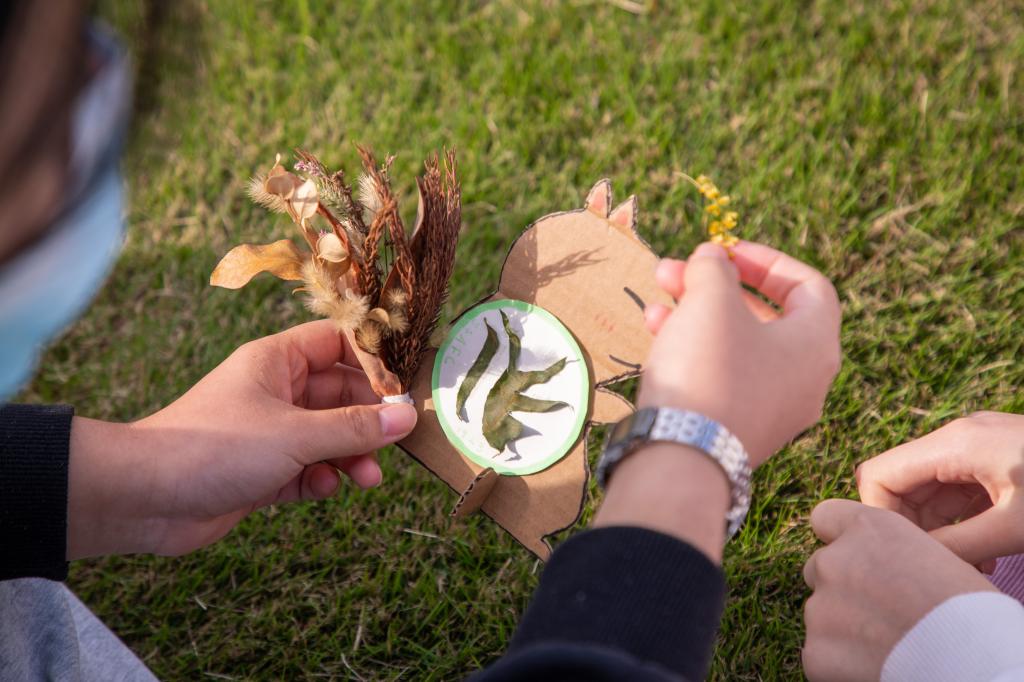 秋去秋来,四季更替,生命的轮回。活动中,同学们将寻秋活动分为“听、看、念”三个环节,“听”秋风掠过秋叶的声音,感悟大自然的“欢歌笑语”。“看”秋色满园的绚烂生光,敞开心扉素心向秋。一季落花沧桑了流年,同学们捡起校园里的落叶,折成的娇滴的玫瑰花、俏皮的梅花鹿、朴实的乡间小院……他们将“念”藏在的作品,定格秋最美的瞬间,即认识到秋的清寒,也看到了秋的硕果累累。