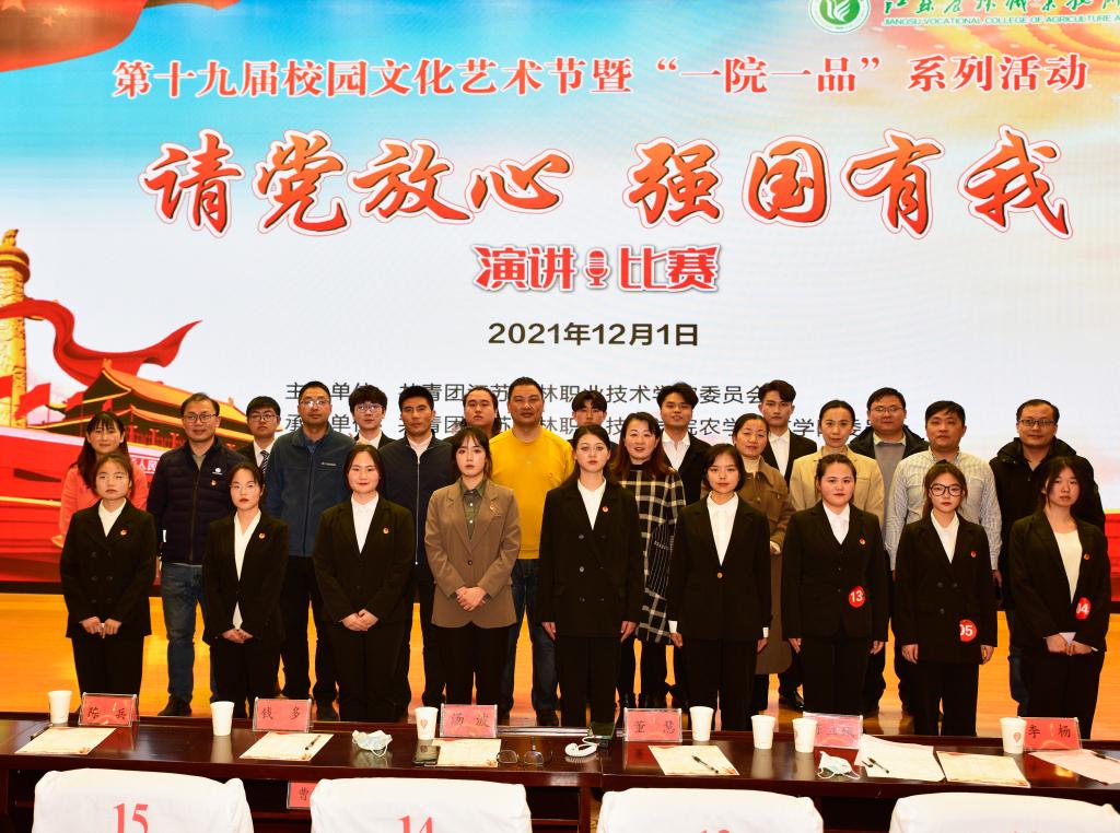 深入学习贯彻习近平总书记在庆祝中国共产党成立100周年大会上的重要讲话精神,展现农林青年积极向上的精神面貌。12月1日晚,由学院团委主办、农学园艺学院团委承办的第十九届校园文化艺术节暨“一院一品”系列活动之“请党放心,强国有我”演讲比赛在图书馆报告厅成功举办。2300余名同学通过网络平台观看了现场直播。