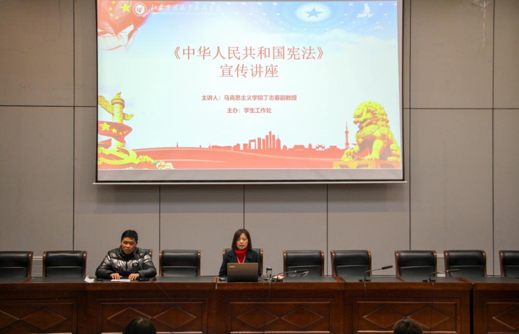 为深入学习贯彻习近平法治思想,营造学习宪法的浓厚氛围,在全国第八个国家宪法日到来之际,学生工作处于12月3日在研发楼报告厅举行了宪法知识专题讲座。