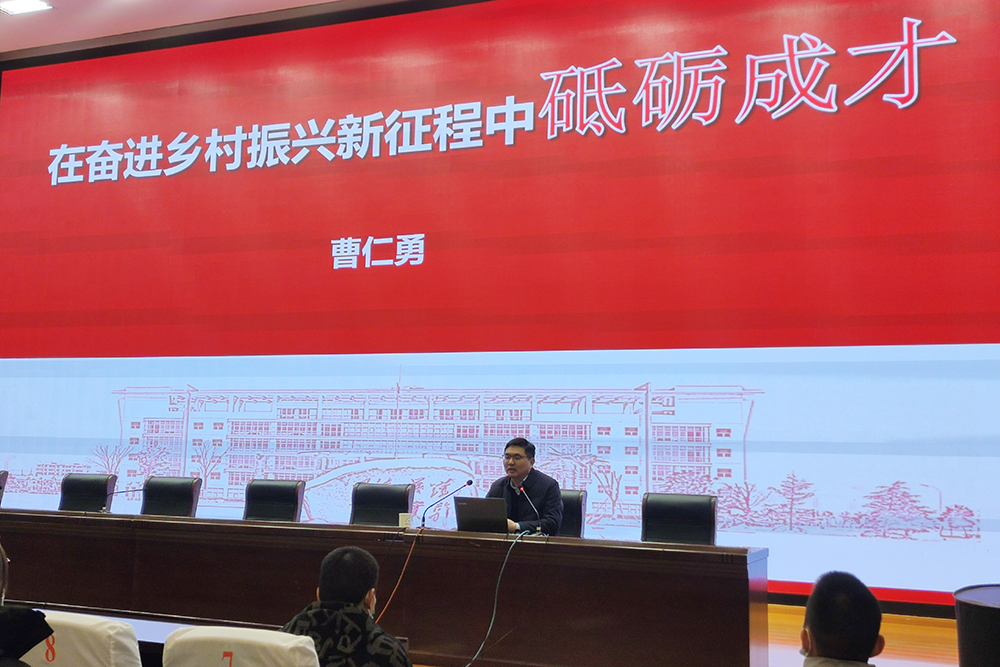 为推进习近平新时代中国特色社会主义思想进教材进课堂进头脑,11月24日和12月1日下午,学院党委副书记曹仁勇在图书馆报告厅为经济与人文学院、机电工程学院的同学们带来了一堂生动的思想政治课——在奋进乡村振兴新征程中砥砺成才。曹仁勇从宏观的角度分析了乡村振兴的目标和重大战略意义,围绕农林实践、青年向度、落地途径三个维度深刻阐述了青年学生与乡村振兴的关系,引导广大青年“懂农业、爱农村、爱农民”,鼓励同学们努力学习,锤炼本领,为做好新时代“三农”工作,为实现乡村全面振兴贡献力量。