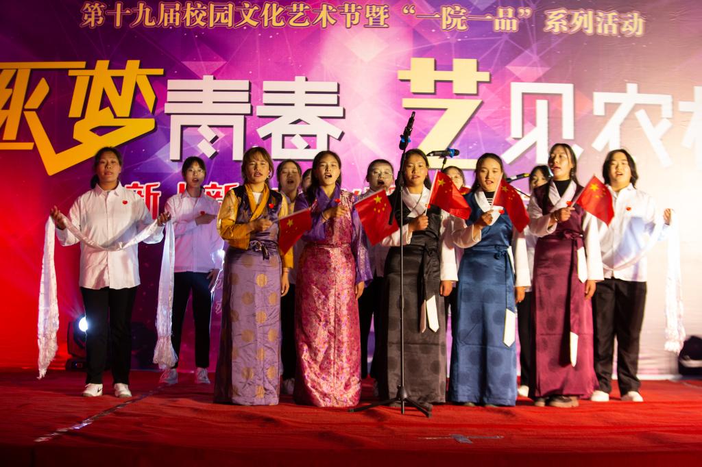大赛在杨诗雨等同学带来的精彩《舞蹈串烧》中拉开帷幕,12组选手依次登台亮相。表演形式丰富多彩,有二胡独奏中华经典名乐《赛马》;有歌曲演唱,几组参赛选手以不同的风格,美妙的歌声为现场和线上观众带来了一场听觉盛宴;语言朗诵类节目《觉醒年代》,农林学子用浑厚且充满情感的声音表达了对理想的热爱;还有来自西藏的同学们带来特色民族舞蹈;小品节目《亮剑》,令同学们在欢笑中充分了解到中国军人精神,将全场氛围推向高潮;经过激烈角逐,最终,由张诗琦同学带来具有民族气息的《傣族舞》荣获本次新生才艺大赛一等奖。