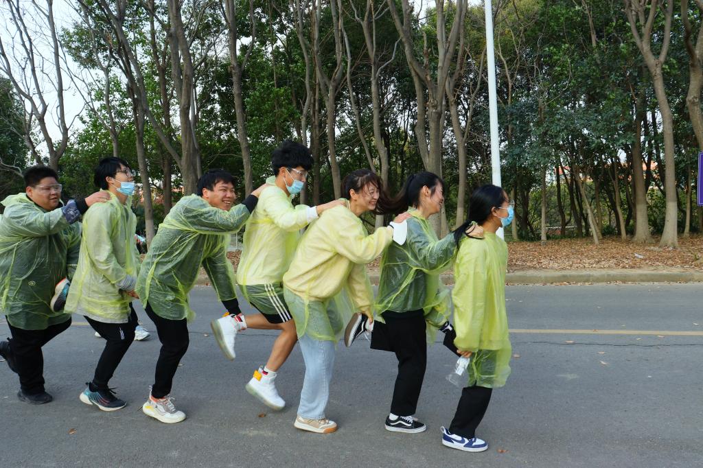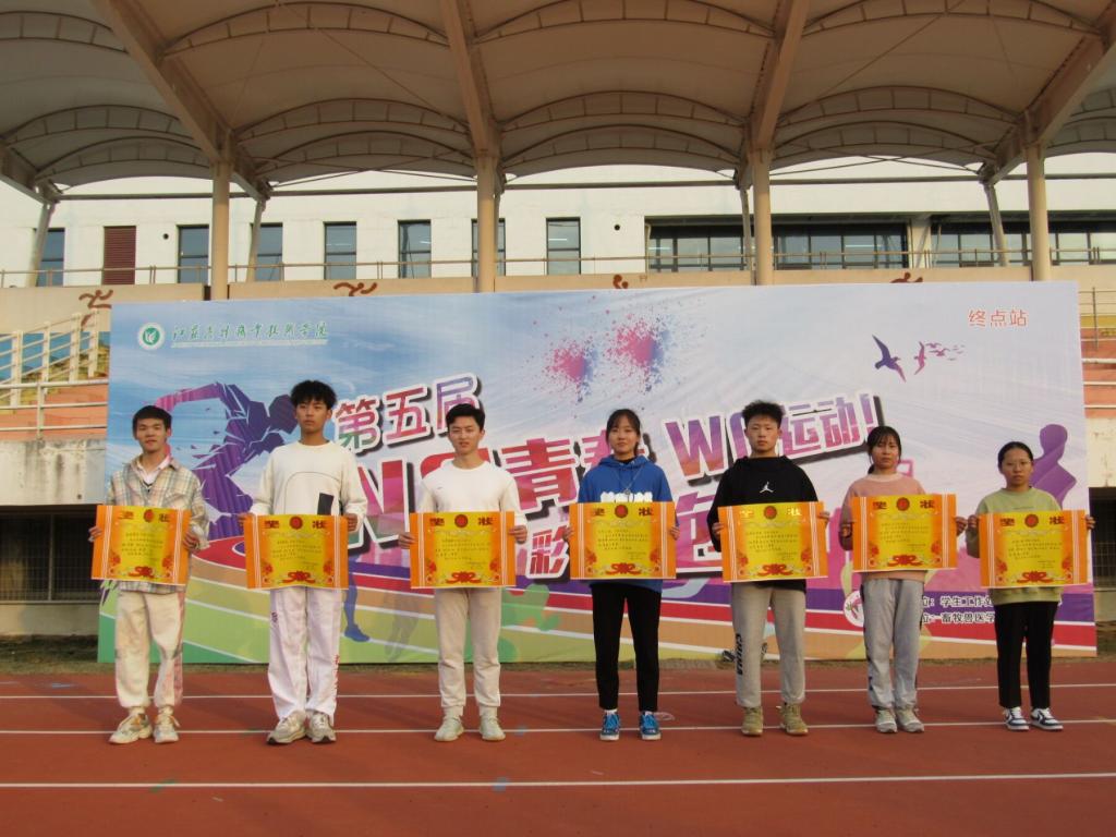 参赛选手们在引导员的带领下,由图书馆正门出发,全程共经过设立于励志广场、体育馆、篮球场及足球场等地的红、橙、黄、绿、蓝五个彩色站,且每个彩色站都有工作人员向参赛选手喷洒彩色粉末,途中的“幸运666”、“手忙脚乱”、“乒乓交响曲”、“单脚火车跑”、“袋鼠跳接力”等趣味游戏让欢笑声充满校园的各个角落。经过激烈角逐,风景园林和畜牧兽医学院代表队荣获一等奖、经济与人文学院代表队荣获二等奖、其他四个二级学院荣获三等奖。