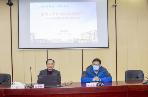 为了帮助全校教科研骨干教师提升科研素质,12月15日,高职教育研究所邀请陈寿根教授为全校教师作了一场主题为“人文社会科学课题研究”学术讲座。本次讲座由学院党委委员、副院长周兴元主持。