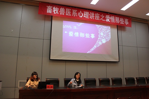 11月11日,畜牧兽医系在研发楼报告厅举办了“爱情那些事”心理讲座。南京邮电大学心理健康教育与咨询中心心理咨询师杨娟老师应邀主讲。 讲座中,杨娟老师用丰富的实例和科学的理论相结合,从爱情的定义、爱情的类型、爱情的发展等方面具体描述了"爱情那点事",深刻普及了恋爱心理知识。同时,她还对同学们现场提出的各种爱情问题一一进行了解答和指导。 爱情在不知不觉中出现,在感性与理性中发展,在不断了解中结果。此次讲座不仅为学生树立正确的恋爱观及交友观打下良好的基础,也将更有效地促进学生恋爱心理的健康发展。