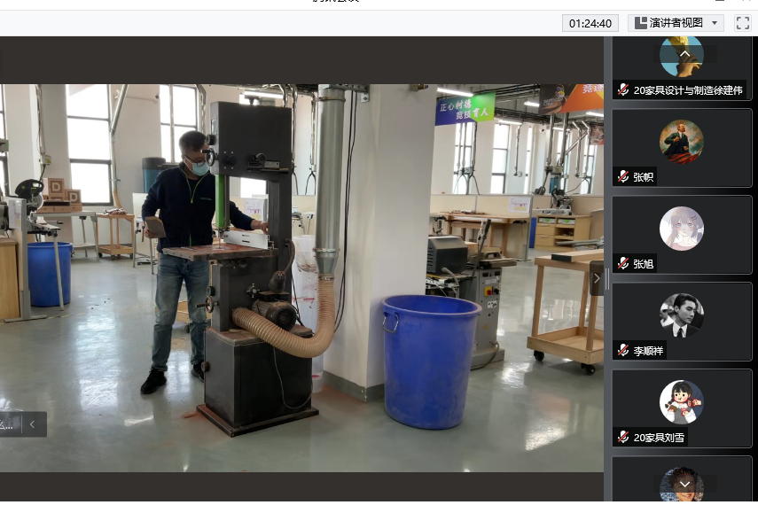 木材科学教研室主任陈慧敏老师,他作为风景园林学院教工第一党支部书记,带头留校,参加疫情防控工作。对于教学他说:“我教的是家具制造工艺课程,实践性非常强,线上授课学生很难理解,正好我在校内,可以通过直播的方式讲解设备原理、结构、调试方法、木材切割技术技巧等,给学生授课,这样更直观,不至于照本宣科。”