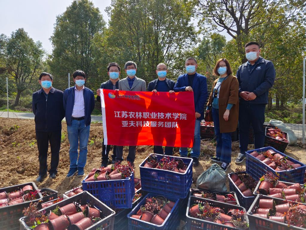 在唐陵村彩叶苗木示范基地,亚夫科技服务团园林分团查看了校地共建示范基地里种苗的生长情况,现场指导彩叶苗木的养护及管理的注意事项,还送去学院自主培育的优质种苗——火焰南天竹,共3700株,用于彩叶树种的普及与推广。同时,亚夫科技服务院园林分团对示范基地下一步的建设及技术示范推广进行了进一步研究讨论。