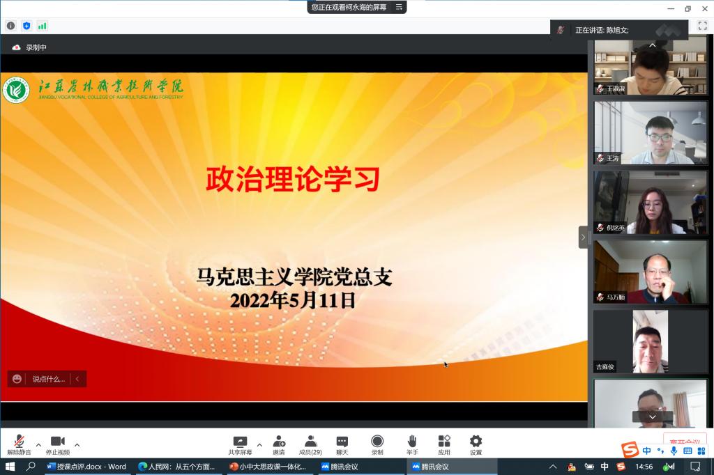 5月11日下午,马克思主义学院以腾讯会议的形式开展政治理论学习会,对近期习近平总书记的重要讲话进行专题学习。会议由党总支副书记李杨主持,马院全体教师参加了此次学习会。
