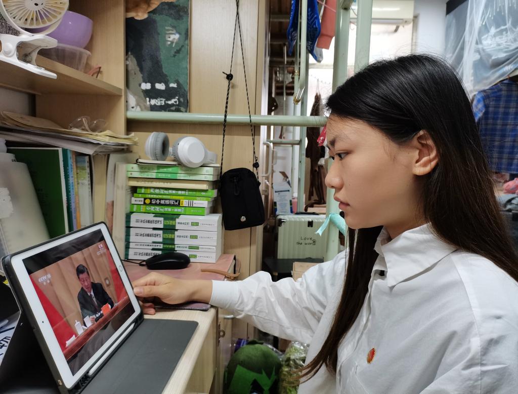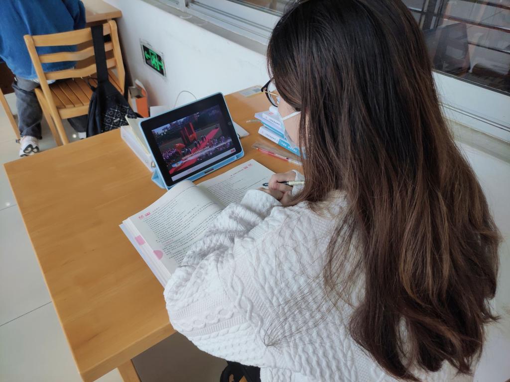 预备党员、镇江市优秀共青团员姚淑婷在记录本上写道:2022年,我21岁,正逢中国共产主义青年团成立100周年。回望百年,青春向党。在当下,我们青年人更应踔厉奋发、笃行不怠,在新时代新征程中留下青春奋斗的鲜明印记。