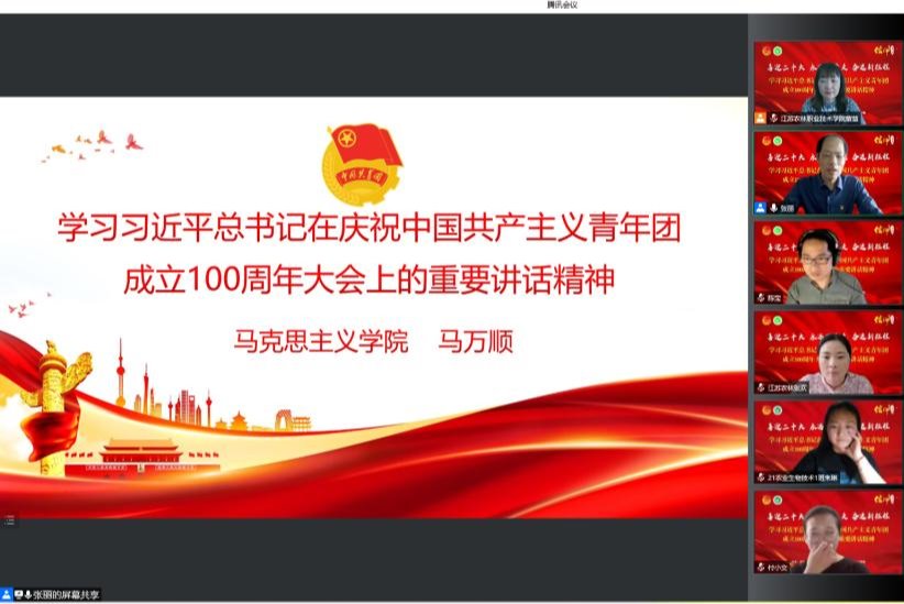 为进一步深入学习贯彻习近平总书记在庆祝中国共产主义青年团成立100周年大会上的重要讲话精神,5月30日下午,学院团委、马克思主义学院组织开展专题信仰公开课,马克思主义学院院长马万顺教授作了专题报告,校院两级团干部、班级团支部书记等共300人在腾讯会议平台参加了讲座。
