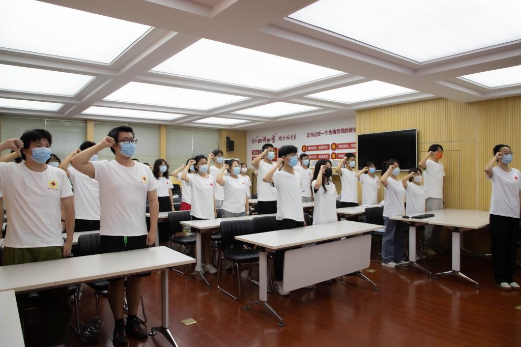 永利官网“园艺助童,博爱万家” 和“防艾不防爱”两个实践项目,获得2022年“博爱青春”暑期志愿服务项目市级立项。活动中,嵇怡老师介绍了本次社会实践的主要内容及具体安排。随后董慧书记为两个团队进行了授旗,她嘱咐志愿者们在实践中要遵守服务项目的安排,时刻注意人身安全、财产安全,注意防暑降温,用实际行动发扬“人道、博爱、奉献”的红十字精神。最后志愿者们进行了集体宣誓。