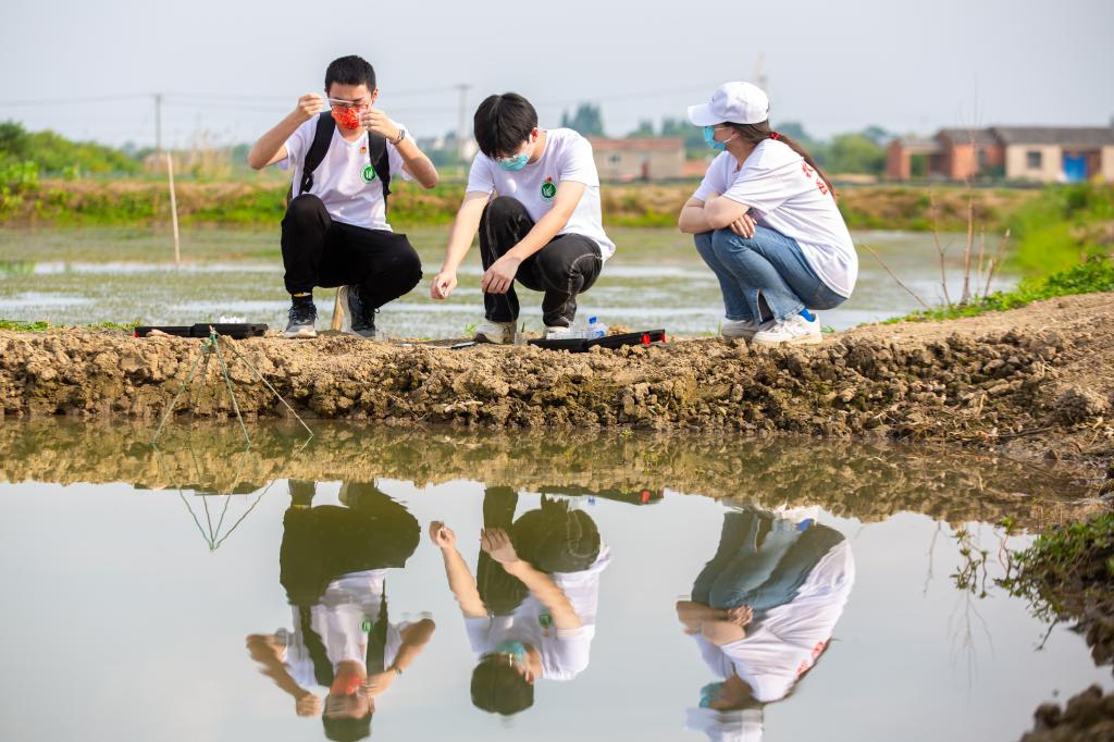 开展实地调研,宣传生态养殖。实践团成员们在镇江市劳模洪玉定研究员的协助下,分别走进句容市后白镇、郭庄镇、天王镇和下蜀镇等主要水产养殖区,调研了青虾、小龙虾、草鱼、甲鱼、大鲵和鲟鱼等品种的养殖现状,开展水质检测、病害分析等服务,发放了小龙虾、河蟹等养殖技术手册,宣讲了稻虾共作、鱼菜共生等生态养殖模式。