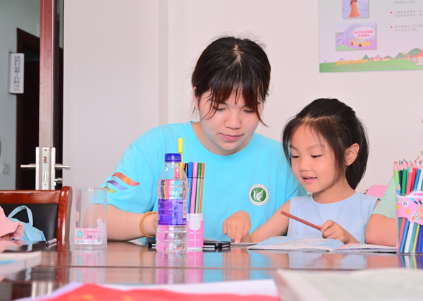 实践团深入文成县朱阳小学,将“五彩课堂”搬进山区,以红、黄、蓝、绿、紫五种颜色,代表着思想引领、心理关怀、学业指导、文体培训、劳动教育等五个方面的教育,全方位做好华侨留守儿童的帮扶活动,使他们思想上端正,学习上进步,心理上健康,成为更加自立、自信、自强、爱国的人。实践团理论宣讲小分队深入社区文化礼堂开展理论宣讲活动,用青言青语讲述中国故事。