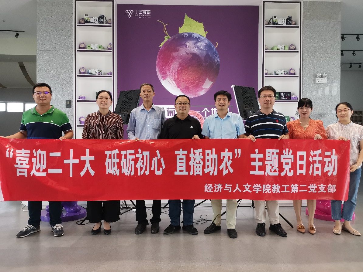 为强化校地党建共建,助力乡村振兴,9月18日,经济与人文学院教工第二党支部走进丁庄村开展“喜迎二十大,砥砺初心,直播助农”主题党日活动。